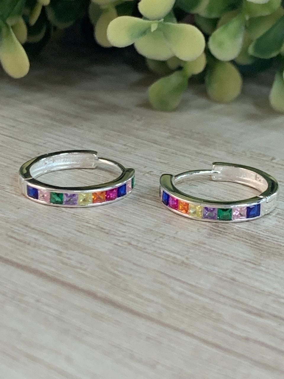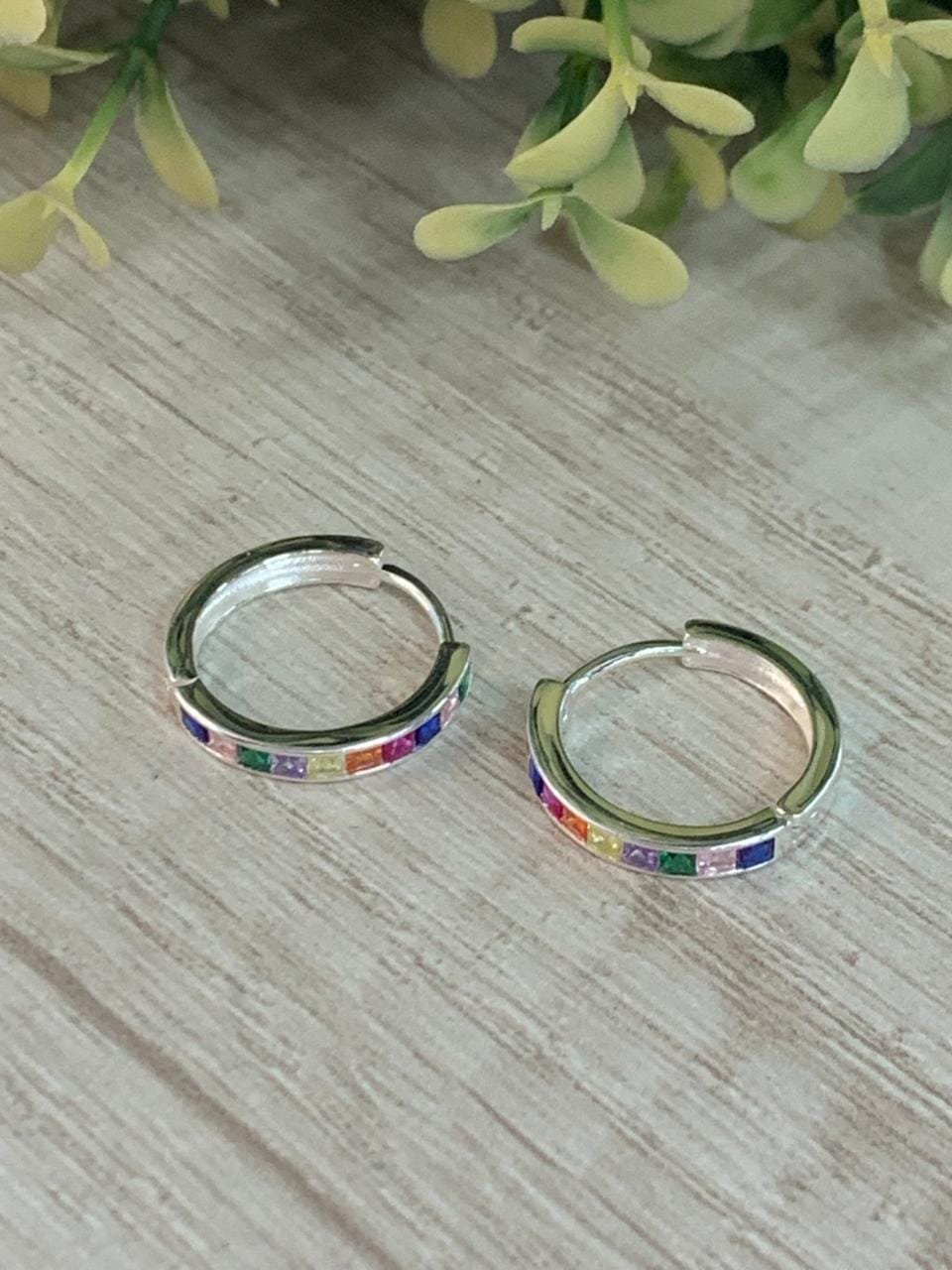 Aros plata huggie microcircones multicolor 18 mm